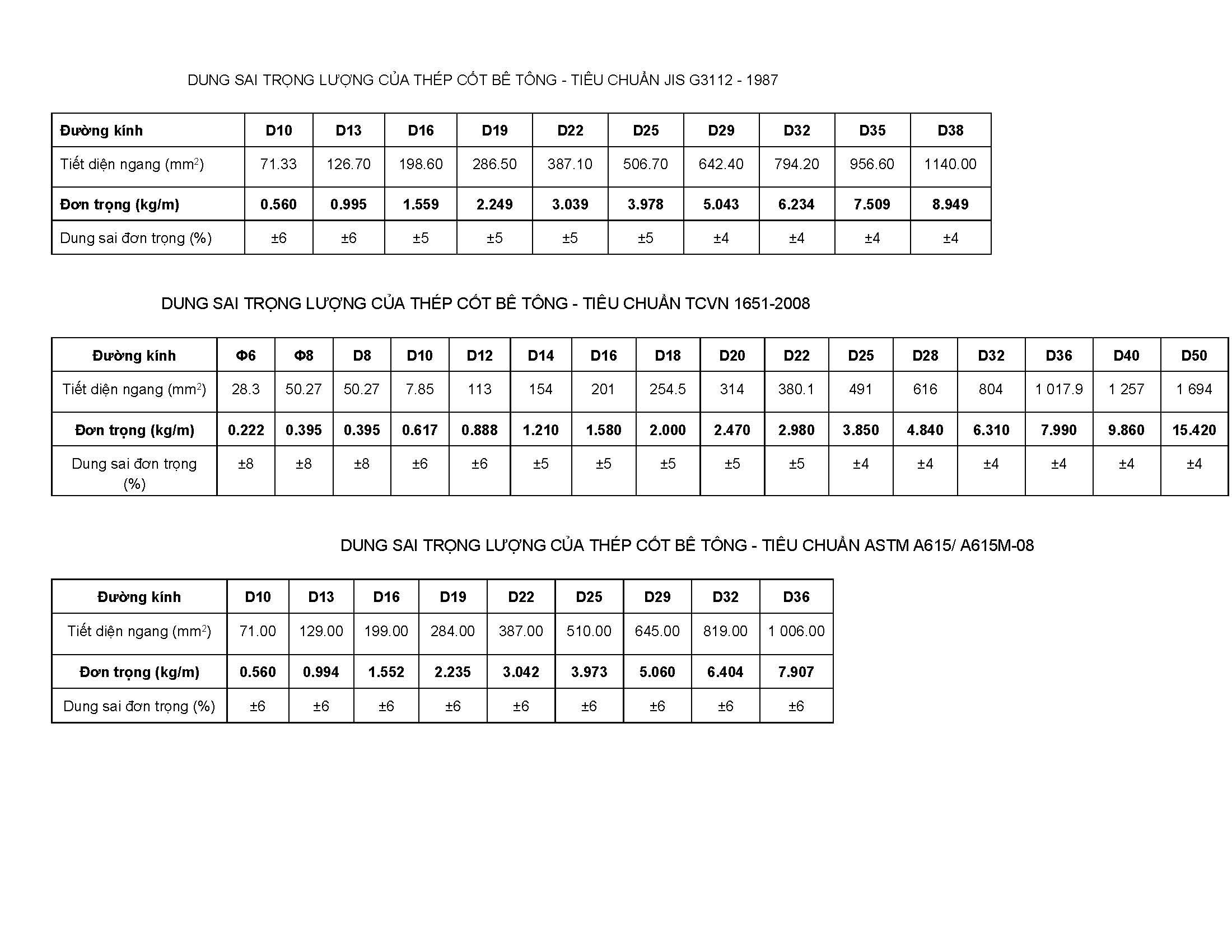 ĐƠN TRỌNG - TIÊU CHUẨN KỸ THUẬT